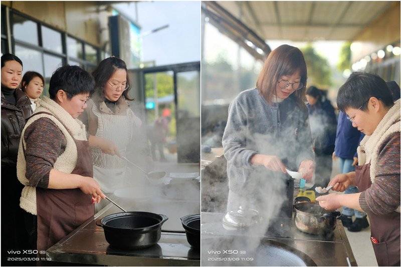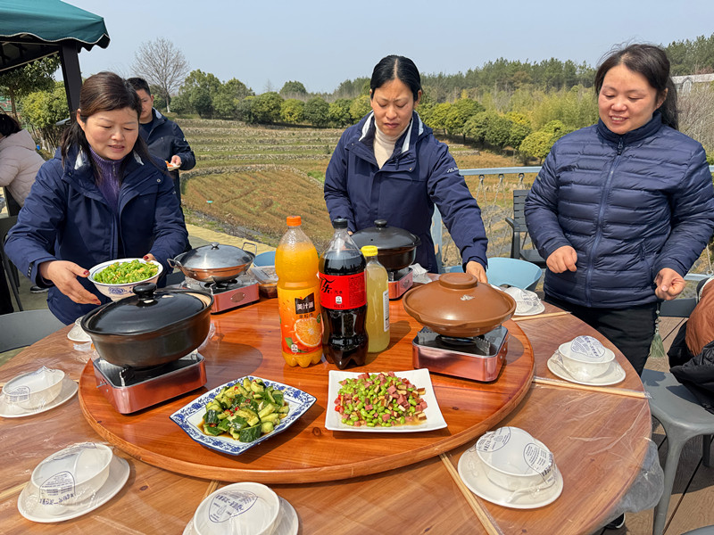 10點40分至12點,活動迎來高潮——農家大鍋飯廚藝比拼。女職工們分組協作,生火、切菜、掌勺,體驗柴火灶烹飪樂趣,最終端出一道道美味佳肴,分享勞動成果,現場其樂融融。